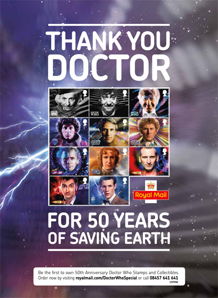 A campaign I created to advertise Doctor Who’s 50th anniversary stamps. The work included a fun wall chart that kids could stick their stamps to – a great way to encourage collecting/purchasing.