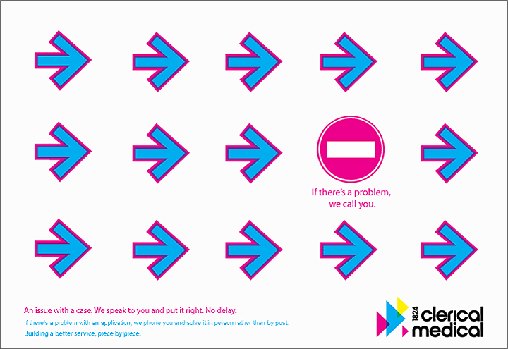 Clerical Medical took two years out to re-build their service, concentrating on consistency and reliability. To announce this, I crafted a staccato tone of voice, complementing a new bold and distintive visual style. Together, they gave Clerical Medical instant standout in a competitive but relatively dull market – duly recognised by the IFA online awards, awarding it ‘best creative’.